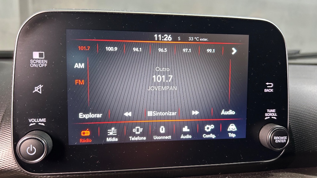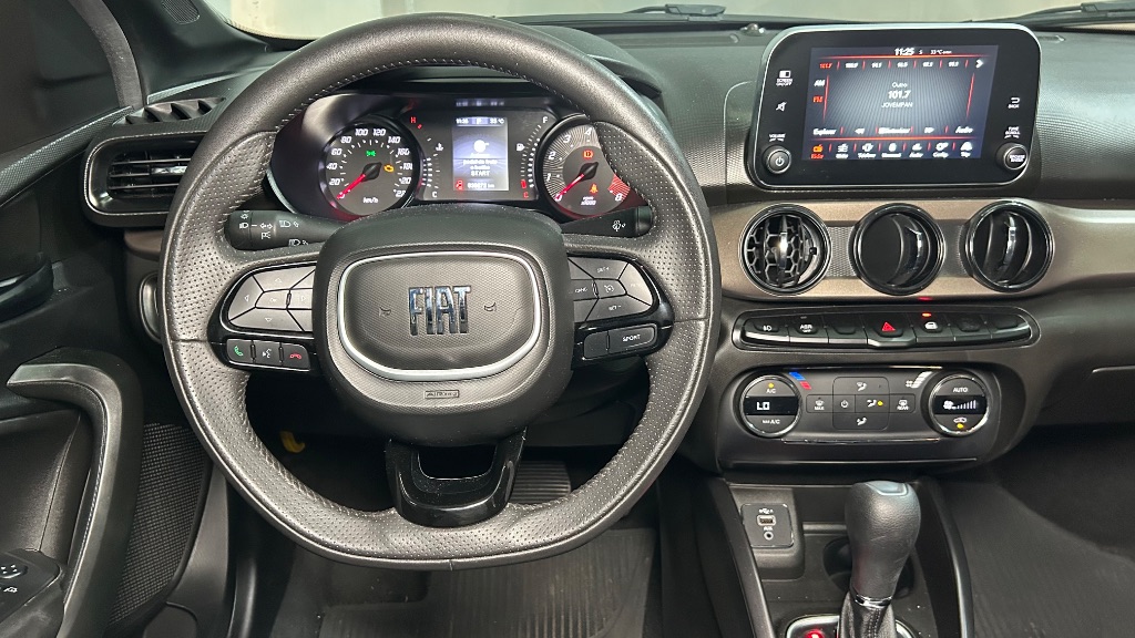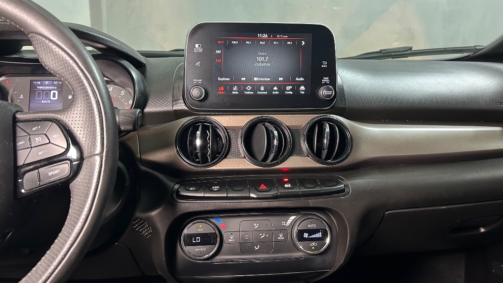 No interior, o modelo conta com ar-condicionado, direção elétrica, vidros e travas elétricas, central multimídia com conectividade para smartphone e volante multifuncional, proporcionando praticidade e conforto para motorista e passageiros.