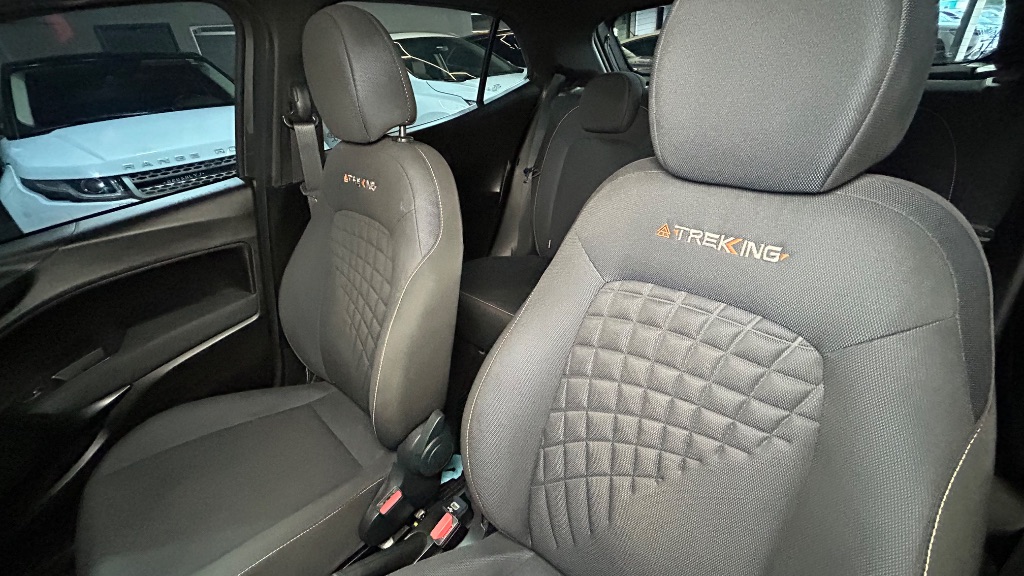Externamente, a versão Trekking se destaca pelo visual aventureiro com molduras plásticas, rodas de liga leve, barras no teto e suspensão levemente elevada, garantindo presença marcante e maior versatilidade no uso diário.