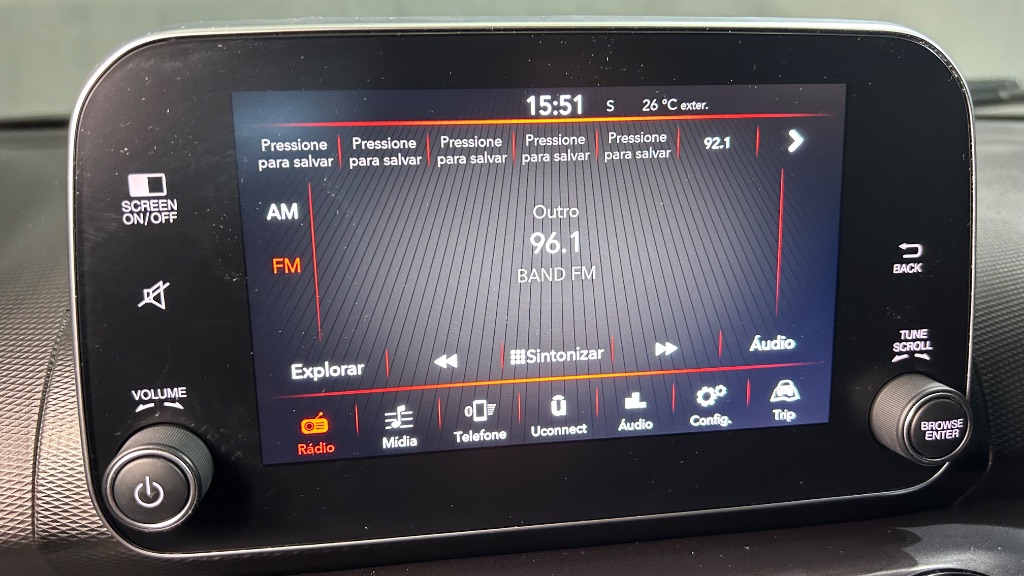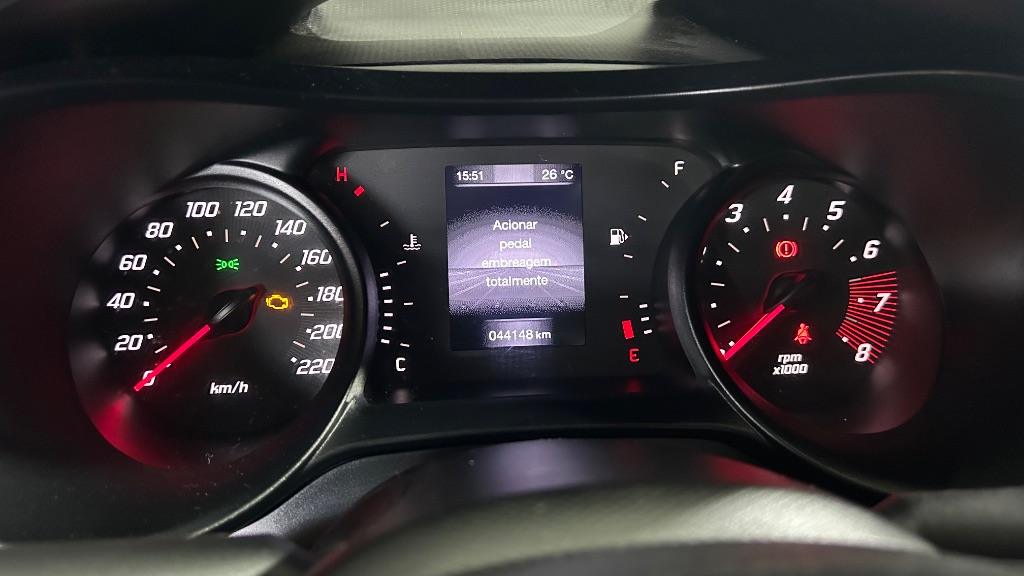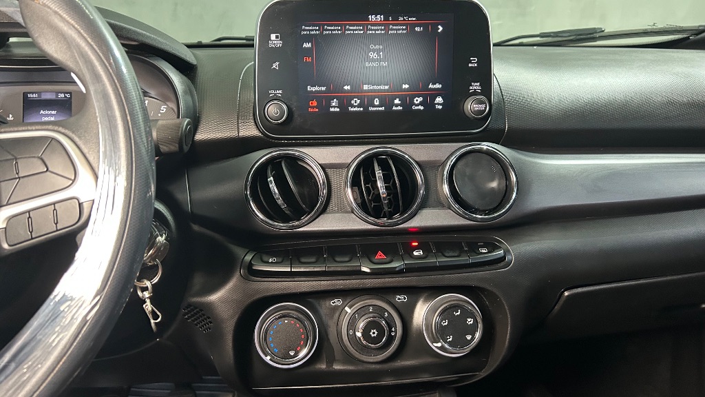 No interior, o modelo conta com ar-condicionado, direção elétrica, central multimídia com conectividade, volante multifuncional e computador de bordo, proporcionando praticidade e conforto para motorista e passageiros.