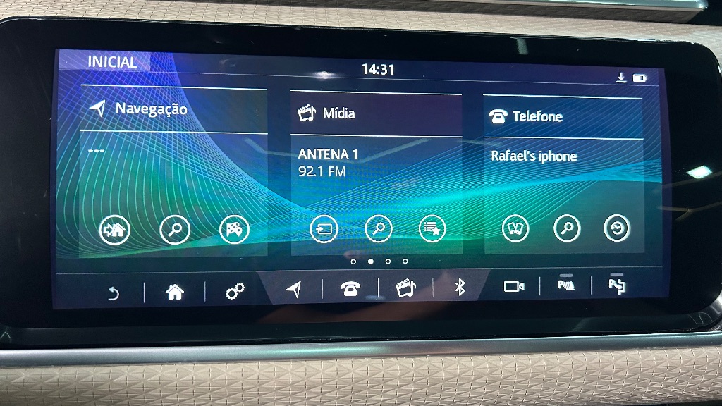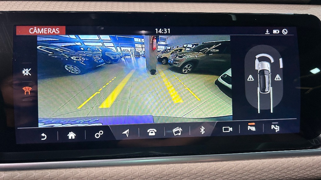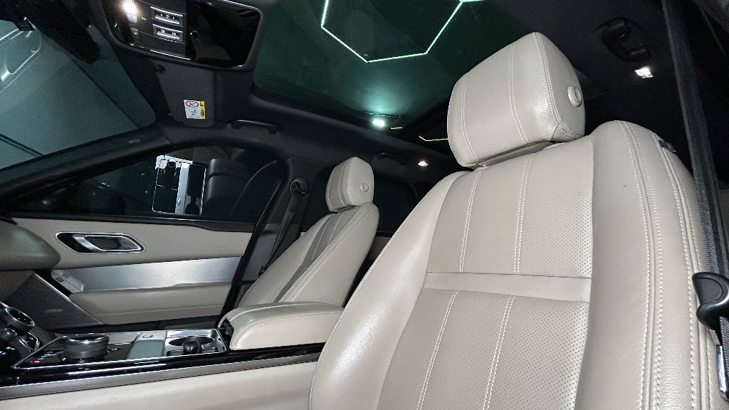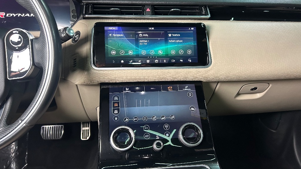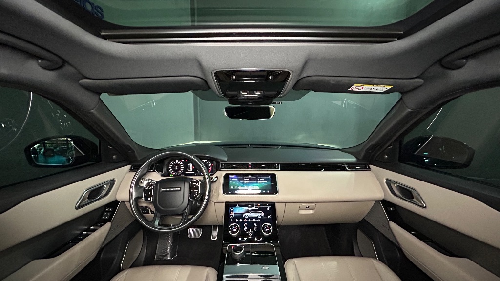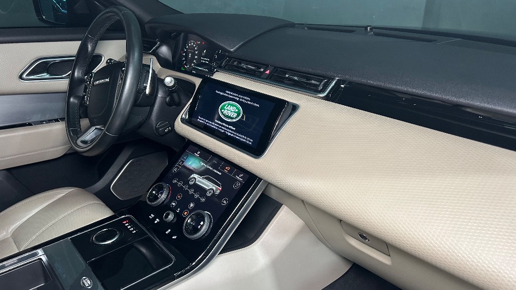 O interior traz acabamento refinado com bancos em couro, painel digital, central multimídia touchscreen, sistema de som premium Meridian, ar-condicionado digital dual zone, carregador de celular por indução e chave presencial com partida por botão.
